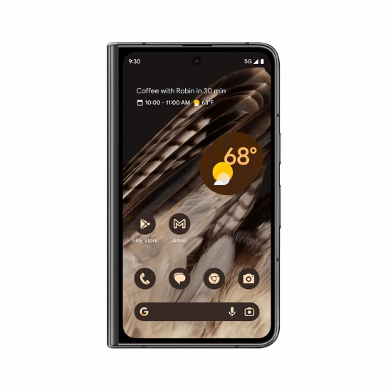 У закритому стані Pixel Fold має знайомий силует смартфона, який поміщається на долоні та поміщається у кишеню. Відкрийте його, і ви побачите 7,6-дюймовий екран з більш тонким профілем, ніж будь-який інший складний телефон на ринку. Створюючи цю складну конструкцію, ми не пішли на компроміс щодо форми та функціональності. Багато компонентів Pixel – камера, акумулятор, динаміки та тактильні відчуття – були ретельно перероблені, щоб відповідати тонкому дизайну. Наша виготовлена за індивідуальним замовленням петля не тільки сприяє цій тонкощі, але і є найміцнішою петлею на ринку. І останнє, але не менш важливе: Pixel Fold має рівень водонепроникності IPX8.
