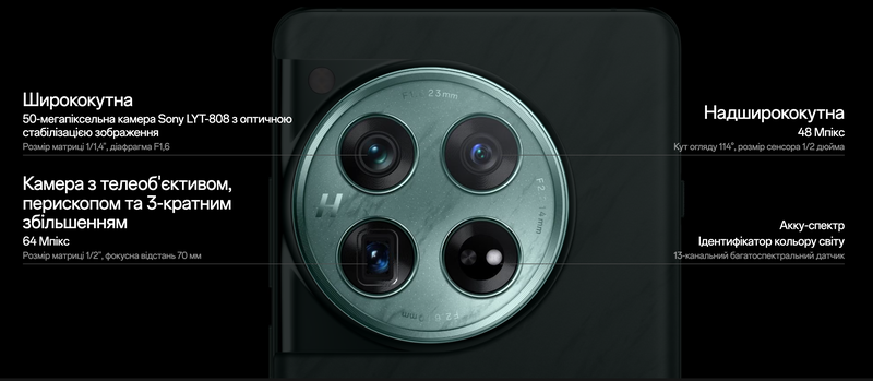 Тепер у вашому розпорядженні професійна камера Hasselblad з абсолютно новою основною матрицею Sony LYT-808, вдосконаленою роздільною здатністю 64 Мп, телеоб'єктивом з перископом і 3-кратним збільшенням, а також надширококутна камера з кутом огляду 114°. Зафіксуйте яскраві моменти в ідеальній якості.