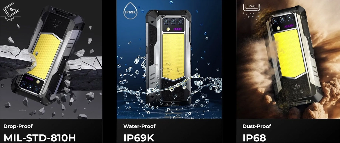 Oukitel WP100 - це стандарт живучості. Він сертифікований за стандартами IP68 та IP69K, не боїться занурення у воду та впливу струменів під високим тиском. Смартфон зберігає працездатність у температурному діапазоні від -45 ° C до 75 ° C і витримує падіння на бетон з висоти 1,5 метрів. Вібрації, бруд і пісок не становлять загрози для цього пристрою, створеного для роботи в найагресивніших середовищах.