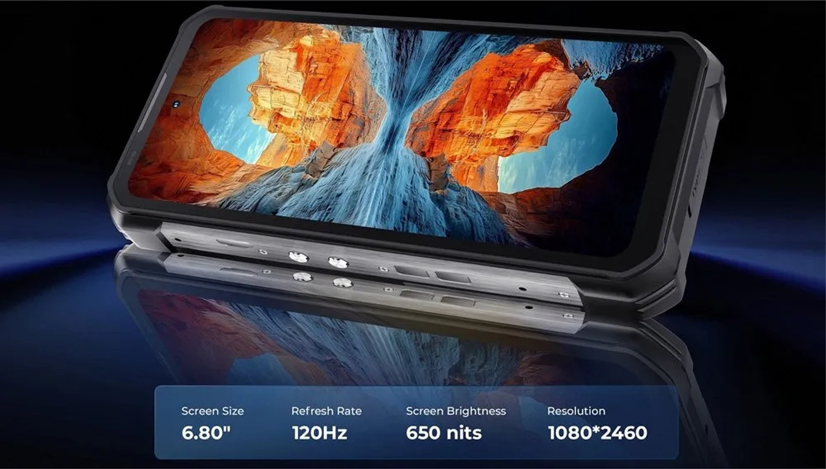 6,8-дюймовий IPS-екран з частотою оновлення 120 Гц і роздільною здатністю 2460×1080 пікселів забезпечує виняткову плавність інтерфейсу та чіткість картинки. Пікова яскравість 650 нит дозволяє комфортно користуватися смартфоном під прямим сонячним промінням. Дисплей надійно захищений броньованим склом Corning Gorilla Glass, яке запобігає появі тріщин та подряпин під час жорсткої експлуатації.