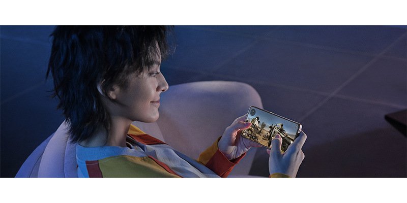 Подвійні динаміки з алгоритмами ІІ забезпечують чистий просторовий звук у грі та під час перегляду відео. Під час розмови інтелектуальна система аналізує звуки оточення та автоматично регулює гучність, дозволяючи з комфортом спілкуватися навіть у людному та галасливому місці.
