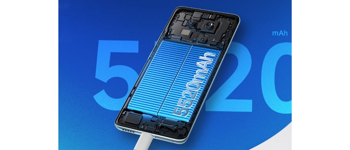 Смартфон оснащений акумулятором нового покоління – кремній-вуглецевою батареєю ємністю 5520 мА*год. Вона довговічна (витримує до 1600 циклів зарядки) та забезпечує до півтора днів автономної роботи. Термін служби батареї сягає п'яти років, що підтверджено сертифікацією TÜV SÜD. Турбозарядка потужністю 45 Вт поповнює заряд до 50% всього за 25 хвилин, а функція зворотного заряджання 18 Вт дозволяє заряджати навушники або годинник прямо від смартфона.