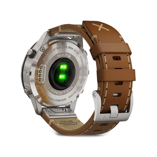- Стильний ремінець з італійської шкіри Vacchetta з фірмовим Х-подібним стібком забезпечує відмінне прилягання та тривале комфортне використання у будь-яких умовах.