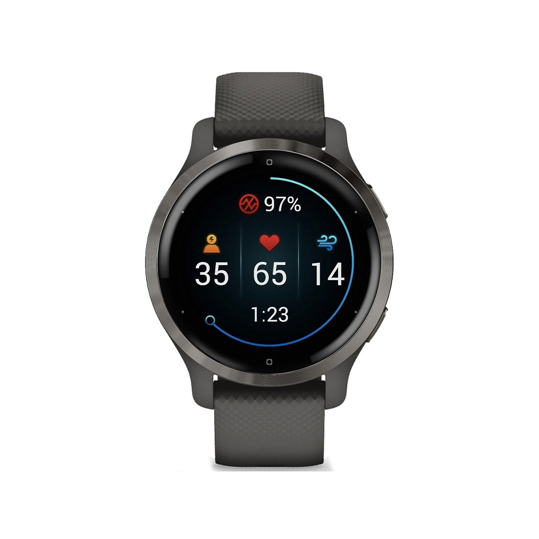 Смарт-годинник Garmin Venu 2 синій граніт із сріблястим безелем 010-02430-10 та з GPS-приймачем включають покращені функції спостереження за здоров'ям. Знаходьте нові заняття за допомогою понад 25 завантажених спортивних додатків. Використовуйте для занять анімовані тренування, показані прямо на екрані годинника. Гарний дисплей AMOLED забезпечує відмінне зображення навіть за яскравого сонячного світла.