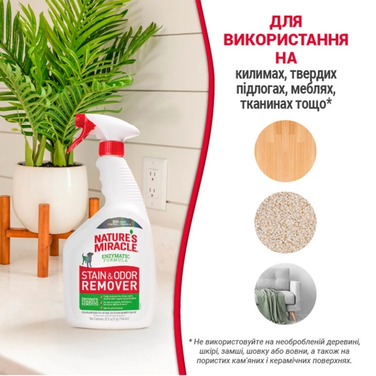 Характеристики для Засіб 8in1 Nature's Miracle Dog Stain&Odor Remover Spray для усунення плям та запахів від собак, 709 мл (680005/6962 USA)