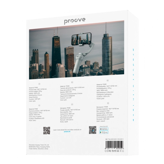 Стабілізатор Proove Axis створений на основі новітніх технологій для забезпечення плавної відеозйомки без тремтіння. Вбудоване світлодіодне підсвічування та тривалий час роботи (до 8 годин) роблять його незамінним помічником для нічних зйомок та заходів, де важлива кожна деталь.