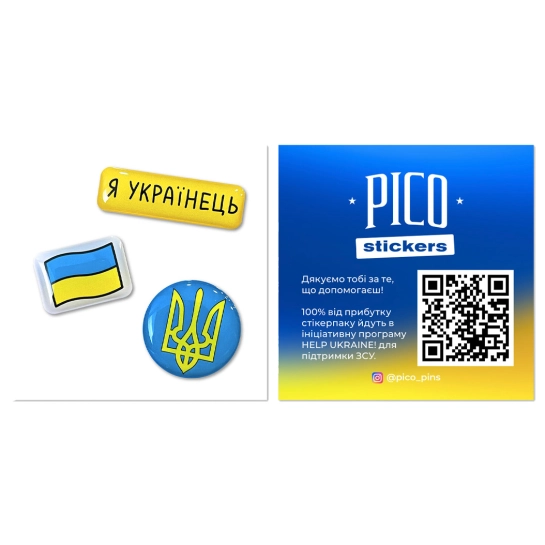 Бренд PICO Pins & Stickers (insta: @pico_pins) спільно з ініціативною програмою Help Ukraine випустили серію супер-якісних 3D-стікерів, присвячених нашій боротьбі проти російської агресії. 100% від прибутку, отриманого від продажу стікерпаків, буде перераховано до Help Ukraine! — ініціативної програми компанії Техно Їжак, яка з перших днів війни займається допомогою ЗСУ та тероборони.