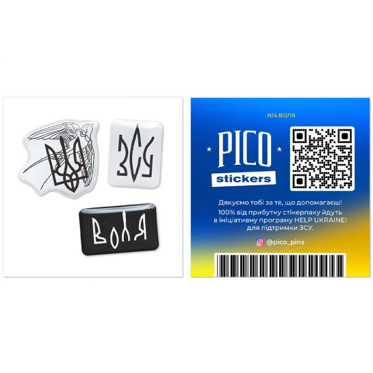 Бренд PICO Pins & Stickers (insta: @pico_pins) спільно з ініціативною програмою Help Ukraine випустили серію супер-якісних 3D-стікерів, присвячених нашій боротьбі проти російської агресії. 100% від прибутку, отриманого від продажу стікерпаків, буде перераховано до Help Ukraine! — ініціативної програми компанії Техно Їжак, яка з перших днів війни займається допомогою ЗСУ та тероборони.