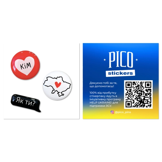 Бренд PICO Pins & Stickers (insta: @pico_pins) спільно з ініціативною програмою Help Ukraine випустили серію супер-якісних 3D-стікерів, присвячених нашій боротьбі проти російської агресії. 100% від прибутку, отриманого від продажу стікерпаків, буде перераховано до Help Ukraine! — ініціативної програми компанії Техно Їжак, яка з перших днів війни займається допомогою ЗСУ та тероборони.