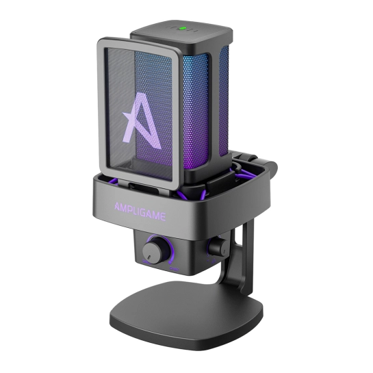 На корпусі розташовані фізичні регулятори, що дозволяють швидко налаштувати чутливість мікрофона, гучність у навушниках та баланс між ігровим звуком та голосовим чатом. Сенсорна кнопка увімкнення/вимкнення з LED-підсвічуванням дозволяє миттєво заглушити мікрофон без клацань і шумів в ефірі. Знімний поп-фільтр допомагає відсікати вибухові приголосні, покращуючи якість запису. Підключення через USB Type-C забезпечує стабільне з'єднання та швидкий старт без встановлення драйверів.