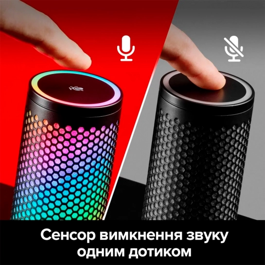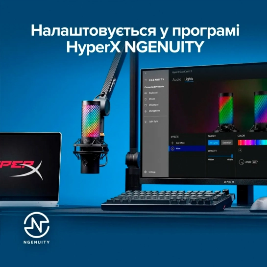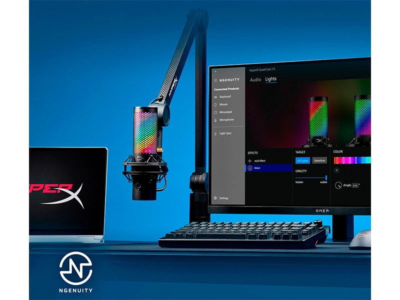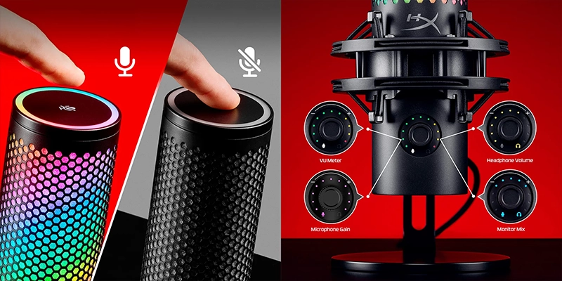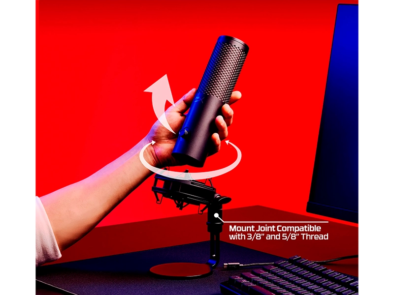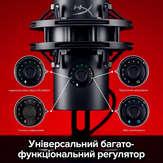 Датчик натискання звуку дозволяє швидко вимкнути мікрофон, щоб контролювати те, що потрібно почути. А за допомогою багатофункціональної ручки ви можете легко вибрати та налаштувати посилення мікрофона, гучність навушників, моніторний мікс та бажану полярну спрямованість. Програмне забезпечення HyperX NGENUITY допоможе налаштувати мікрофон для ідеального звуку.