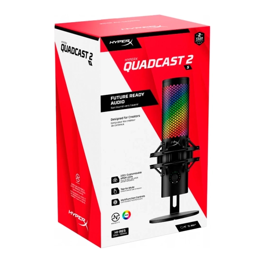 HyperX QuadCast 2 S – це повнофункціональний мікрофон, розроблений спеціально для творчих людей. QuadCast 2 S пропонує найкращий у своєму класі дозвіл для запису аудіо за допомогою ігрового мікрофона USB. Завдяки вдосконаленій звуковій роздільній здатності 32-біт/192 кГц мікрофон забезпечує неперевершену чіткість і точність, зберігаючи виняткову точність звуку.