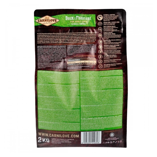 Характеристики для Сухий корм Carnilove Cat Hairball Control для виведення шерсті у кішок, качка та фазан, 2 кг (170197/2348)