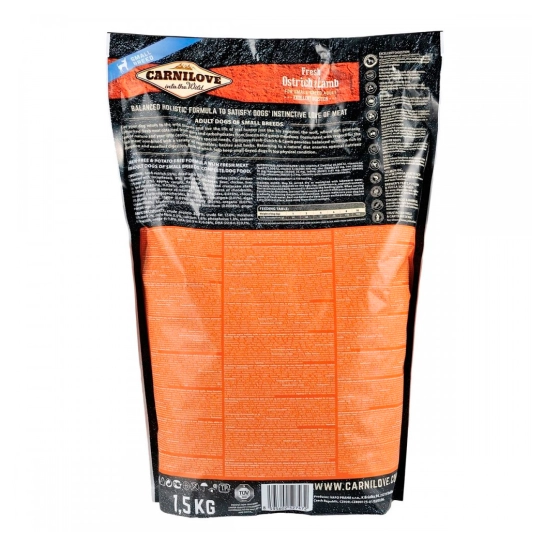 Характеристики для Сухий корм Carnilove Fresh Ostrich & Lamb для дорослих собак дрібних порід, ягня та страус, 1,5 кг (170869/7472)