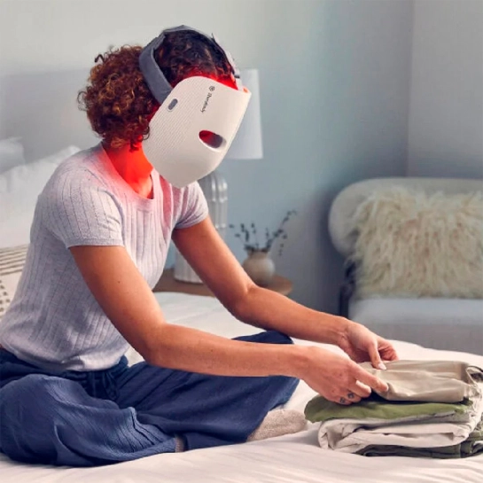 Проривна світлодіодна маска по догляду за шкірою забезпечує ефективне червоне, червоне + інфрачервоне і синє світло на все обличчя з додатковою вібраційною терапією, що знімає напругу.