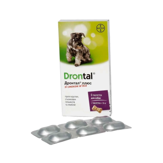 Таблетки Drontal Plus зі смаком м'яса (упаковка 6 таблеток) (54187)