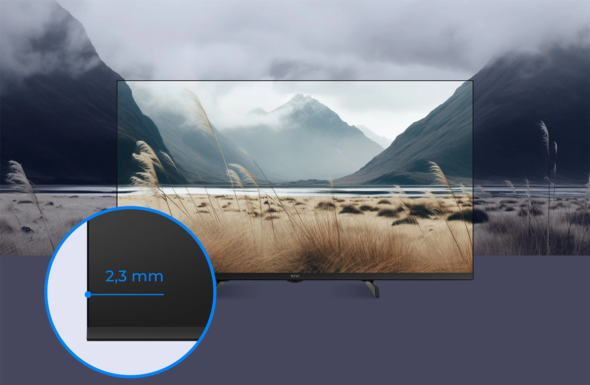 Екран у безрамковому форматі створює ефект занурення — зображення розширює простір і концентрує увагу лише на контенті. Матовий чорний корпус надає телевізору елегантності та витонченості, а лаконічні форми дозволяють йому органічно вписатися у вітальню, спальню або навіть кухню. Kivi Prime 40" - це поєднання стилю, функціональності та технологічної естетики.