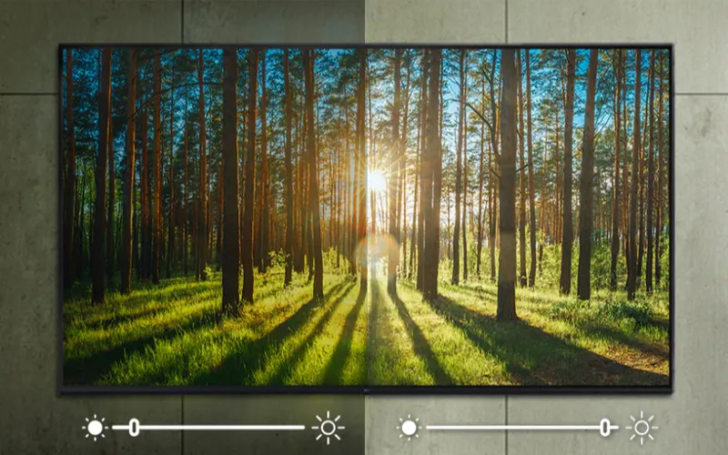 Технологія управління яскравістю за допомогою штучного інтелекту забезпечує оптимальний рівень яскравості, автоматично адаптуючись до умов навколишнього освітлення.