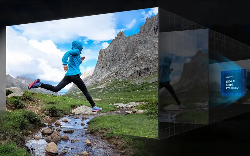 Завдяки процесору 4K на базі штучного інтелекту від Samsung ви отримаєте найкращі враження від зображення у форматі 4K. Наша технологія масштабування зображення до 4K на основі 20 нейронних мереж штучного інтелекту перетворює контент на зображення з роздільною здатністю, близькою до 4K. Наш процесор NQ4 AI Gen2 оптимізує зображення та звук, забезпечуючи високу якість 4K, незалежно від того, чи ви дивитесь контент стрімінгових сервісів, чи граєте в улюблені відеоігри або дивіться спортивні трансляції.