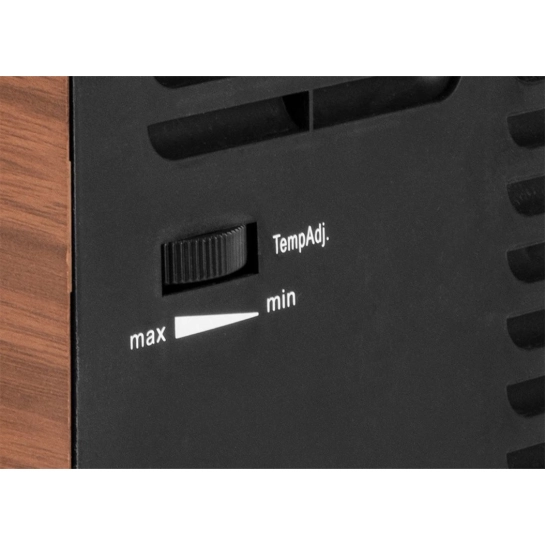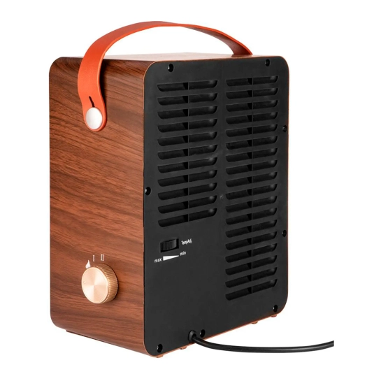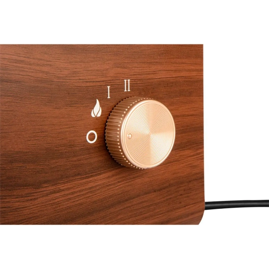 Камін обладнаний регулятором, який дозволяє контролювати рівень тепла, а завдяки невеликим розмірам (25×14.4×30.4 см) його легко розмістити навіть у невеликій кімнаті. Дерев'яний корпус додає виробу естетики та створює атмосферу справжнього домашнього вогнища. Пристрій ідеально підходить для квартир, офісів чи заміських будинків.
