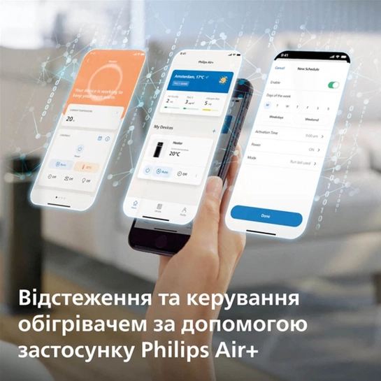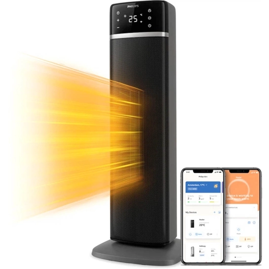 Philips 5000 серії використовує технологію Philips Eco AI — «розумний» режим, який аналізує температуру в кімнаті, ваші звички та навколишні умови, щоб оптимізувати споживання електрики. За даними виробника, у цьому режимі можна скоротити витрати енергії до ~50% порівняно з звичайними тепловентиляторами.