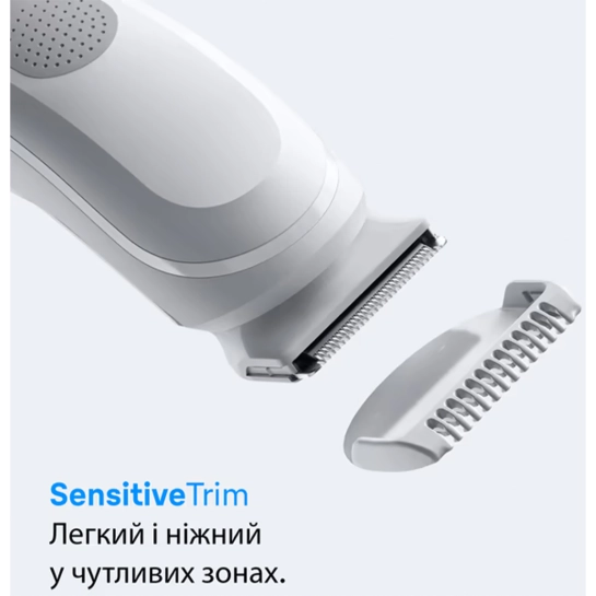Знімна насадка Sensitive Comb забезпечує захист шкіри, виключаючи прямий контакт із лезами. Це робить процес стрижки безпечним і максимально комфортним, особливо в чутливих зонах, таких як пахви, груди, живіт та інтимна область.