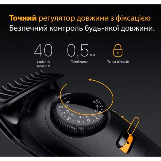 Зберігайте повний контроль з кожним підстриганням завдяки технології PrecisionLock та точному коліщаті з 40 налаштуваннями довжини з кроком 0,5 мм.