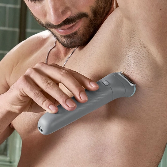 Тример для тіла на 100% водонепроникний, тож ідеально підходить як для сухого, так і для вологого використання — у ванній кімнаті або прямо в душі. Це забезпечує комфорт під час кожного використання за вашим вподобанням та спрощує очищення пристрою.