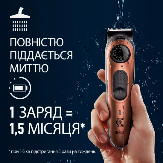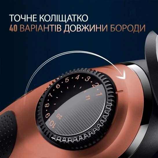 - 3 насадки-гребінки, які легко миються та пропонують регулювання довжини від 1 до 21 мм, для підстригання всієї бороди.