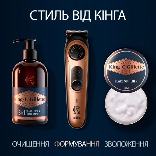 - Тример для бороди King C. Gillette із завжди гострими лезами для бездоганної точності.