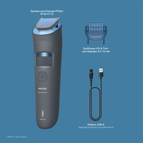 Характеристики для Тример Philips Beard Trimmer 3000 Series (BT3617/15)