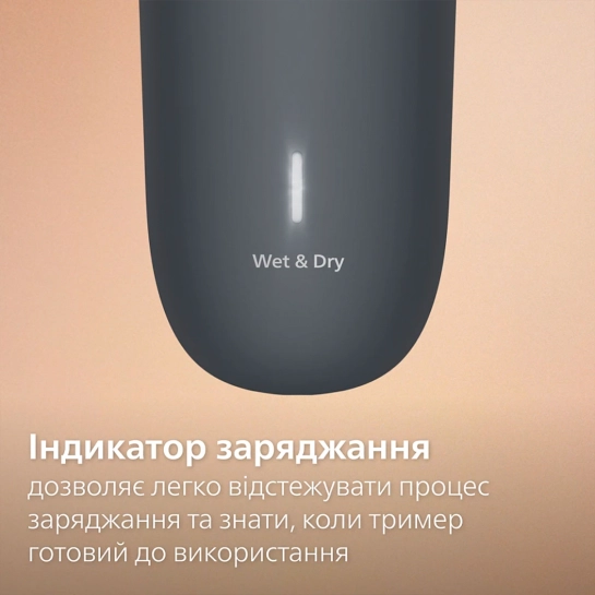 Світловий індикатор показує стан акумулятора та повідомляє про завершення заряджання. Завдяки йому ви завжди зможете заряджати пристрій вчасно, щоб не чекати перед наступним голінням.
