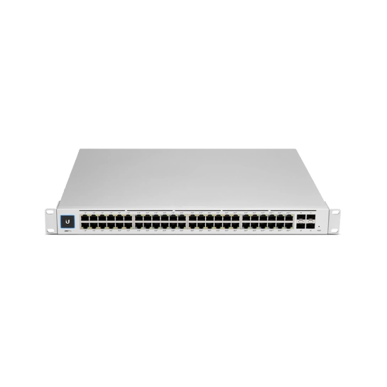 UniFi Switch Pro 48 PoE - це повністю керований комутатор рівня 3 з (8) портами 802.3bt (PoE++) і (40) 802.3at (PoE +) Gigabit Ethernet. (4) Висхідні канали 10G SFP + пропонують агрегацію каналів для підвищення пропускної здатності і доступності. UniFi Switch Pro 48 PoE володіє багатим набоєм Він поєднує в собі до 600 Вт майже безшумної потужності PoE з резервуванням живлення UniFi SmartPower RPS. Додаток UniFi Network і мобільний додаток UniFi Network дозволяють адміністраторам налаштовувати і відстежувати практично всі функції комутатора в інтуїтивно зрозумілому графічному користувальницькому інтерфейсі з будь-якого місця.