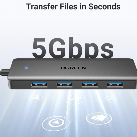 USB HUB Ugreen CM219 – компактний та стильний концентратор у кольорі "Space Gray", з довжиною кабелю 0.15 м. Він дозволяє розширити один порт USB 3.0 до чотирьох USB 3.0 виходів, що надає можливість підключення різних пристроїв без зайвих перехідників. Завдяки сучасному дизайну він відмінно гармонує з ноутбуками та гаджетами в єдиному кольоровому стилі.