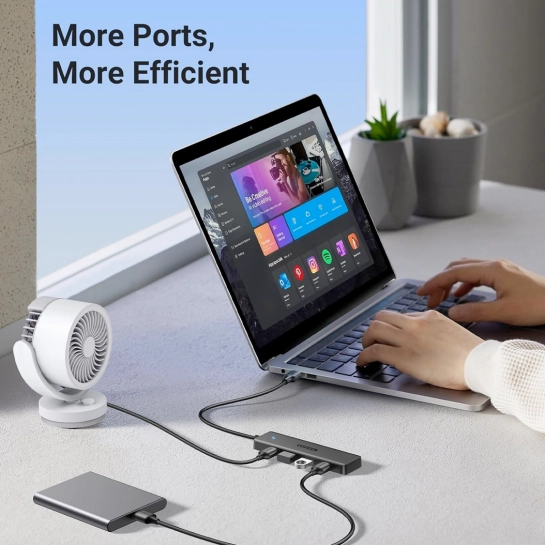 Корпус хаба виготовлений з міцного та зносостійкого пластику, стійкого до механічних впливів та щоденної експлуатації. Пристрій має малу вагу і компактні розміри, завдяки чому легко поміщається в сумку або кишеню. Це робить його ідеальним аксесуаром як для дому, так і для подорожей.