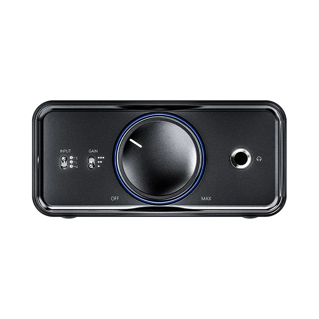 Пристрій має велику, зручну ручку для регулювання гучності, можна сказати, що вона трохи втоплена в корупус. Текстура та розмір ручки максимально розроблені для комфортного регулювання звуку. Варто відзначити, що ручка має підсвічування, колір якого є індикатором поточної частоти дискретизації.