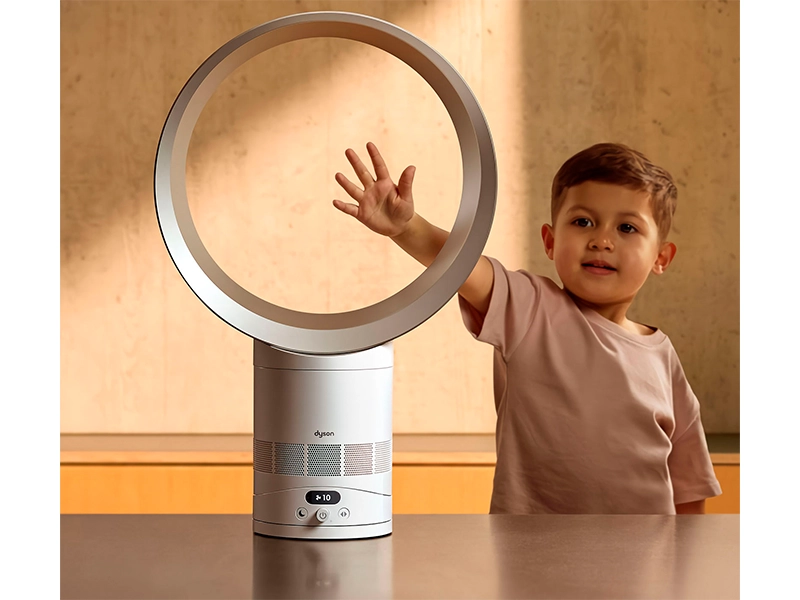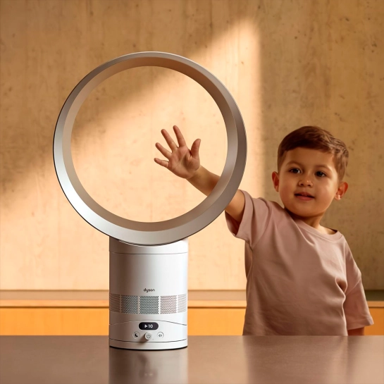 Інноваційний безлопатевий дизайн унеможливлює ризик травм і легко очищається від пилу, оскільки немає важкодоступних місць для накопичення забруднень. Ручне налаштування кута нахилу та обертання гарантує точний напрямок потоку у будь-який кут кімнати. Плавне регулювання швидкості дозволяє вибрати оптимальний режим без стрибків та шумів. Це робить вентилятор безпечним та зручним у будь-яких умовах експлуатації.