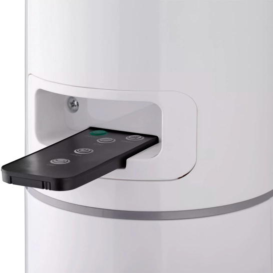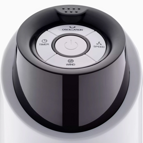 Вентилятор отримав LED-дисплей, на якому відображається температура навколишнього середовища. На верхній частині розташована панель управління, а для зручного зберігання пульта дистанційного керування передбачений спеціальний відсік. Серед налаштувань – три режими швидкості, обертання, таймер до 15 годин, а також режим морського бризу.