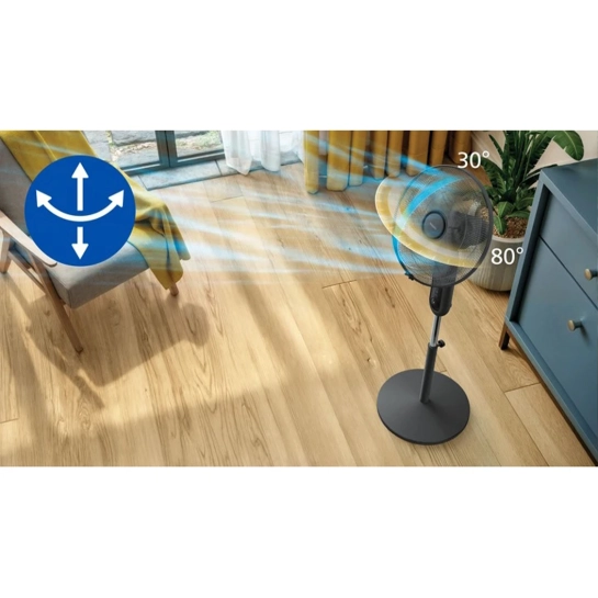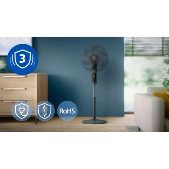 Управління вентилятором PHILIPS Series 1000 CX1520/01 здійснюється за допомогою зручної електронної панелі, а його функціонал доповнюється такими корисними опціями як автоповорот для рівномірного розподілу повітря, ароматизація для створення приємної атмосфери та надійний захист від перегріву.
