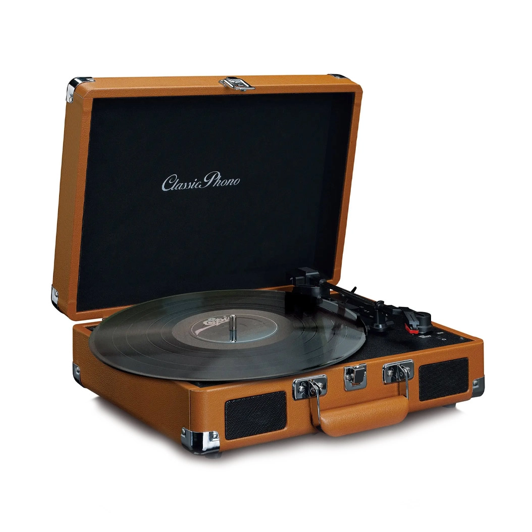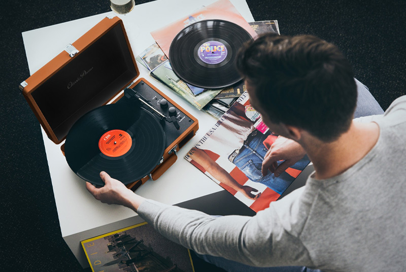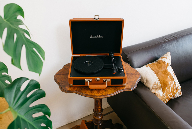 Програвач вінілових платівок - це зручний прилад без зайвих надмірностей. Завдяки вбудованим динамікам, ви можете насолоджуватися високоякісним звуком під час відтворення улюбленої музики. Візьміть футляр із собою на день народження, зустріч чи вечірку та здивуйте всіх великим репертуаром старих та нових хітів. Зробіть вечірку справді незабутньою, заздалегідь зв'язавшись із друзями та сім'єю та попросивши їх принести свої улюблені платівки. Через вихід динаміка підключіть програвач до зовнішніх підсилювачів або навушників, щоб отримати додаткові враження від прослуховування.