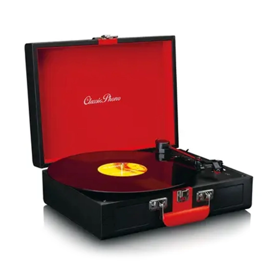 Насолоджуйтесь ретро-дизайном Lenco TT-110BKRD. Цей валізний програвач має сучасні функції та можливості відтворення і має гарний вінтажний дизайн.