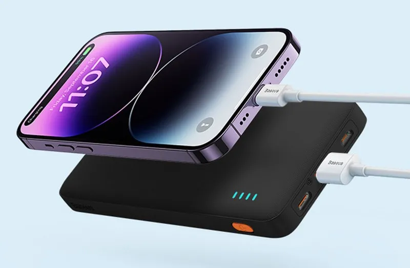 Павербанк Baseus Airpow Quick Charge підтримує швидке заряджання PD 3.0 потужністю 20 Вт для iPhone 13/12/11, яке може заряджати iPhone 13 приблизно до 60% за 30 хвилин за допомогою кабелю USB-C. Павербанк можна зарядити приблизно за 6 годин за допомогою зарядного пристрою PD на 20 Вт.