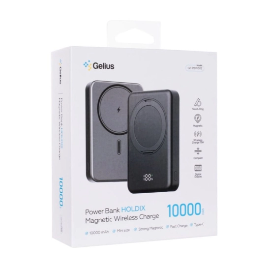 Опис Зовнішній акумулятор з бездротовий зарядкой Gelius HOLDIX Magnetic Wireless Charge 15W 10000mAh Black