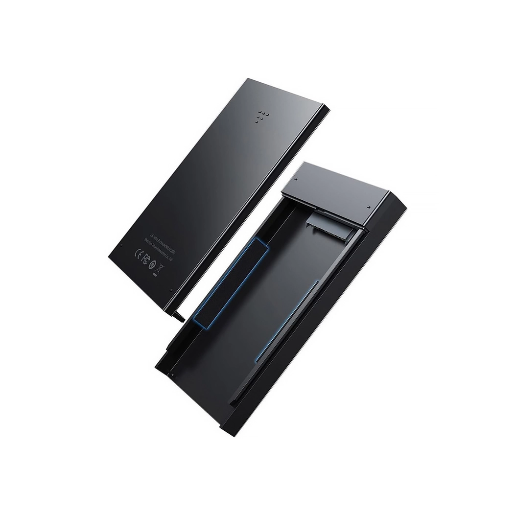 Перевага зовнішніх накопичувачів у тому, що можуть створювати резервні копії наших найважливіших даних. Якщо ваш комп'ютер пошкоджено, або він заражений вірусом або якщо ви хочете зберігати дані в місці, відрізаному від мережі, захищаючи його від крадіжки, портативний диск у корпусі – ідеальне рішення. Просто підключіть його до порту на своєму комп'ютері і все готове. Корпус для накопичувачів сумісний з популярними 2,5-дюймовими дисками з інтерфейсом SATA, що дозволяє використовувати багато жорстких дисків, а також твердотільні накопичувачі. Підключити пристрій дуже просто. Щоб відкрити корпус, натисніть і зсуньте його, потім вставте диск і засуньте верхню частину корпусу назад, підключіть кабель з комплекту до відсіку, інший кінець кабелю до комп'ютера, і все. Пристрій має світловий індикатор, який показує стан пристрою. Коли диск не використовується, він постійно світиться оранжевим світлом, а коли диск використовується, постійно блимає.