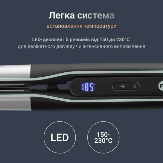 6 температурних режимів від 150 до 230°C, включаючи режим 230°C для інтенсивного випрямлення та 170°C для делікатного догляду та збереження здорового вигляду волосся.