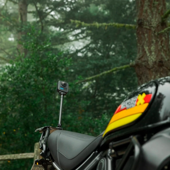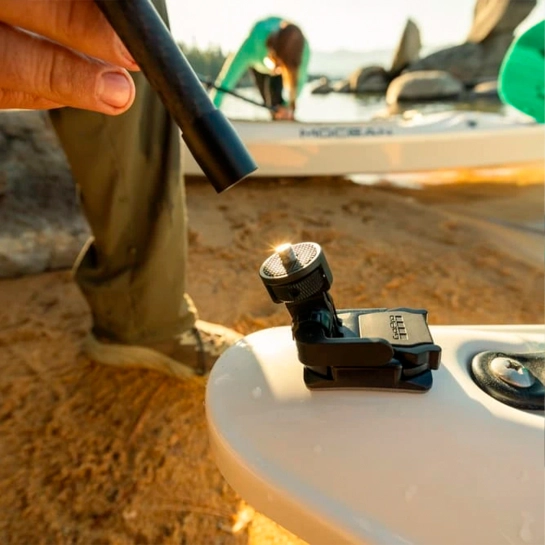 Конструкція пряжки передбачає надійне закріплення камери під час серфінгу, катання на велосипеді, мотоспорті або зйомках у русі. Кулачковий замок з блокуючими зубцями фіксує камеру, запобігає її сковзанню, а регульоване кріплення дозволяє встановлювати її під оптимальним кутом для будь-якого типу кадру. На схилах або міських умовах пряжка забезпечує стабільність, навіть якщо монопод використовується для зйомки 360 °.