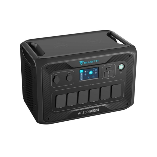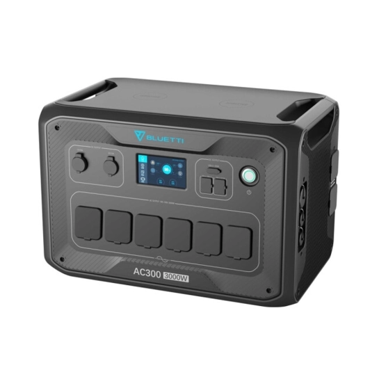 BLUETTI AC300 на 100% модульний і може приймати до 4×B300 (3,072 Втч на блок) батарейних модулів на блок, загалом 12,288 Втч - живлення всієї вашої родини для основних потреб протягом днів під час надзвичайних ситуацій чи відключення електроенергії!