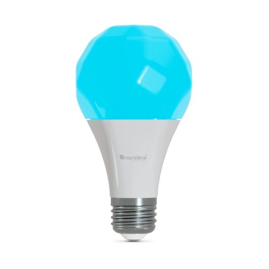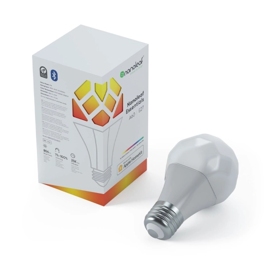 Умная лампа Nanoleaf Essentials имеет цоколь E27 и позволяет освещать комнату световым потоком в 1100 люмен. Она излучает один из 16 миллионов цветов и все оттенки белого, а температура света регулируется от 2700 до 6500 К. Продуманная конструкция обеспечивает равномерное распределение света по всей площади. Лампа поддерживает подключение через Bluetooth-соединение к смартфону, с которого можно управлять интенсивностью освещения, а также включать и выключать ее.
