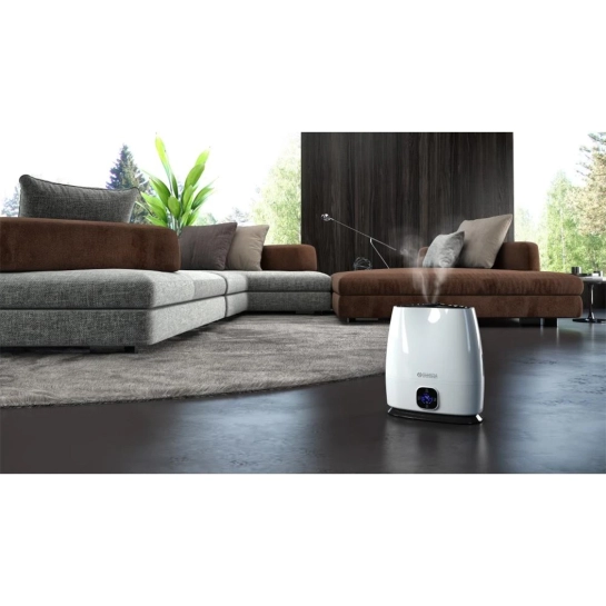 Увлажнитель воздуха Olimpia Splendid может похвастаться компактностью и практичным дизайном. Благодаря небольшим размерам и ультразвуковому распылению вы можете его без проблем размещать даже на столе. А управление направлением тумана делает использование устройства еще более удобным.