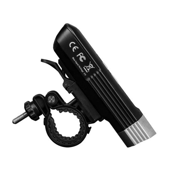 На велосипед велофара Fenix BC30R закрепляется при помощи универсального по размеру крепления, в комплекте с которым предлагаются 2 резиновые прокладки. В зависимости от того используются ли они и в какой комбинации, крепление подходит для рулей диаметром 22-35 мм. Его положение можно свободно регулировать по вертикали и поворачивать на 30° по горизонтали.